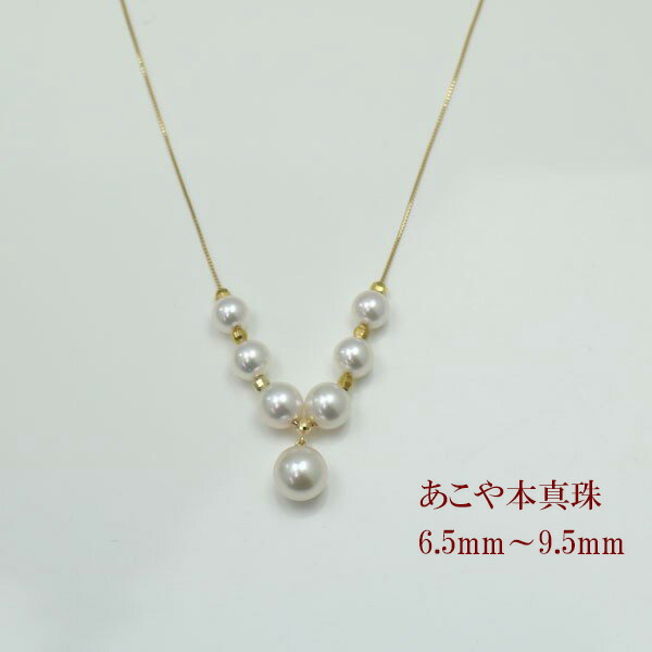 未使用品 ネックレス ペンダント パール 真珠 ネックレス K18 カジュアル アコヤ本真珠 デザイン スルー 6 5mm 9 5mm パールネックレス あこや真珠 Www Lota Cl